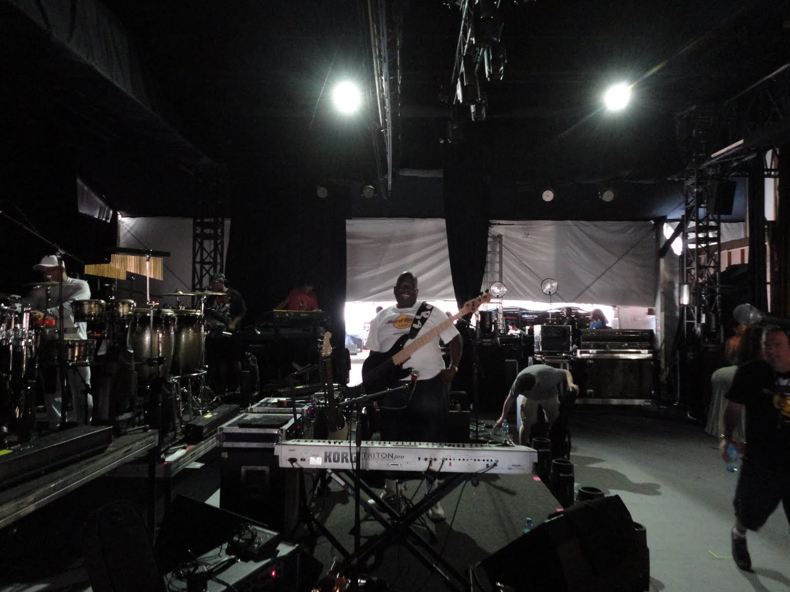 We all gathered in the lobby and went to sound check. On the day that Stevie performed, Santana, Enrique Iglesias and an amazing Flamenco troupe performed. We performed in a tent that had been converted to look like a movie set. It was beautiful!